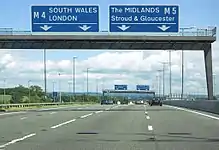Signage on the UK network conforms broadly to European norms, though a number of signs are unique to Britain and direction signs omit European route numbers. All length distances are shown in miles or yards,[19] speed is in miles per hour[20] whilst height and width restrictions are required to be shown in feet and inches (though the metric measurements may optionally also appear). In September 2007 the European Commission ruled that the United Kingdom would never be required by them to convert signs to metric.[21]