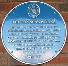 Plaque at what is now Tesco, Roundhay Road, Leeds. 53°49′24″N 1°30′39″W / 53.82323°N 1.5108°W / 53.82323; -1.5108 (Olympia Works plaque)