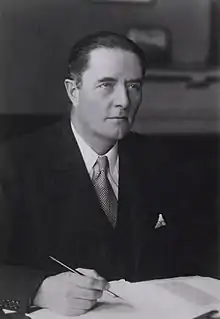 Hudson was elected as Member of Parliament (MP) for Whitehaven in 1924 and served there until losing in 1929.[3] In 1931 he was returned for Southport.[3] He served in several ministerial posts, becoming a Privy Counsellor in 1938. From 1937 to 1940, Hudson served as Secretary for Overseas Trade. Hudson was on the right-wing of the Conservative party, being opposed to the "one nation" Conservatives such as Neville Chamberlain.[4] He greatly disliked the coalition National government and frequently advocated that the Conservatives dispose of their Liberal National Party and National Labour allies to create all Tory government.[4] Hudson had a particular dislike of the Liberal National War Secretary Leslie Hore-Belisha whom he intrigued against endlessly as he very much wanted to see Hore-Belisha out of the cabinet.[4] Besides for the coalition National government, Hudson resented the dominance of the "provincial" lawyers and businessmen who made up the majority of the Conservative backbenchers whom he felt lacked the necessary vision for Britain's future.[4] The British historian D.C. Watt wrote: "Normally a mere parliamentary undersecretary is the lowest, the most cribbed and confined of political figures, whose role is merely to deputise for his minister in answering the less controversial of parliamentary questions...But the Department of Overseas Trade...was unique, a hybrid sub-department nominally responsible to, yet in fact independent of, the Board of Trade and the Foreign Office. In practice, this meant that Hudson was his own master".[4]