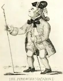 Robert Jones was a lieutenant in the Royal Artillery, but was commonly referred to as "Captain Jones" by the popular press and royal court in the late 1700s.[4] He was most likely associated with the macaronis,[5] the 18th-century English subculture of men who dressed, spoke, and behaved in an unusually sentimental and androgynous manner. Historian and LGBTQ scholar Rictor Norton, who called Jones "a popular character",[6] reported that Jones would attend masquerades dressed like the puppet character Mr Punch.[6]