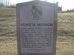 - ↑ "Report of the Reverend R. M. Loughridge to the Board of Foreign Mission Regarding the Creek Mission" (PDF). Oklahoma Historical Society. Retrieved 2008-01-18.