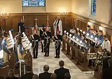 Her Majesty The Queen attended the sixtieth anniversary service of the dedication of the chapel in July 2013, accompanied by Prince Edward, The Earl of Wessex. The Sovereign's Standard of The Blues and Royals was laid up in The Robin Chapel on 4 October 2015, at a special service to mark the occasion.[4]