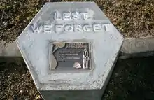 The Cenotaph is located in Queen's Park and was commissioned by the Local Repatriation Committee. It was unveiled on Anzac Day, 25 April 1938 by Colonel Sir Donald Cameron[4][5] and honours the 93 local men who fell in the First World War (the same names that were originally recorded on the trees) and the 39 who fell in the Second World War. The erection of the cenotaph was delayed as the Committee's first priority was to provide for the welfare of returned soldiers. A memorial honour board had already been erected by the committee in the Town Hall.[1]