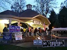 Ahead the 3-day Maine caucus before Super Tuesday, Paul was the only Republican candidate to visit the state.[121] Paul held campaign events, including a rally at the Maine State House on January 28, 2008.[122] The week before the caucus, Paul said that he was hoping for a "grand showing" in the state.[123][124] With 74.7% of the precincts counted, Paul placed third in the voter preference tally with 19%.[125] National delegates are assigned to candidates May 2 when state delegates hold their convention. Paul earned 35% of the state delegates to take second place.[126]