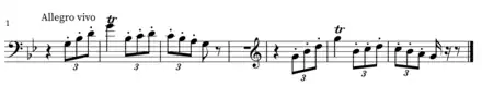 The first section is followed by a brief passage wherein the cello carries a more lyrical and upbeat passage.