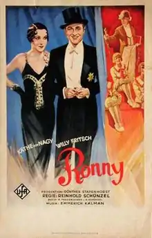 Ronny is a 1931 German musical comedy film directed by Reinhold Schünzel and starring Käthe von Nagy, Willy Fritsch, and Hans Wassmann.[1] A separate French-language version Ronny was also released. It was shot at the Babelsberg Studios in Berlin and premiered at the city's Gloria-Palast. The film's art direction was by Werner Schlichting and Benno von Arent.