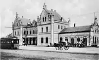 The original station building construction in the 1900s, before it was destroyed by a fire and rebuilt with significant changes