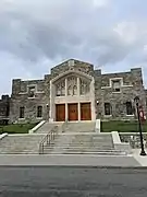 Rose Hill Gymnasium is a 3,200-seat multi-purpose arena on the Rose Hill campus of Fordham University in The Bronx, New York City, New York. The arena, which opened in 1925, is the oldest on-campus venue currently used primarily for an NCAA Division I basketball team[1] and the second-oldest overall (with the oldest being Northeastern University's Matthews Arena, which opened in 1910 and currently used for its basketball and hockey teams). volleyball team of Fordham University also uses the gym. The Rose Hill Gymnasium has a gothic facade in keeping with the rest of Fordham University's buildings. The interior design features two high-tech video boards, bleachers that surround all four sides of the court, and additional elevated seating along the court. ESPN named this gym one of the four “cathedrals” of college basketball.[2] At the time it was built, it was one of the largest on-campus facilities in the country, earning it the nickname "The Prairie." The Rose Hill Gymnasium has been the site of many legendary college and high school basketball games, including the final high school game of Lew Alcindor, later known as Kareem Abdul-Jabbar. During World War II, it was also used as a barracks. New York City Mayor Ed Koch lived in these barracks for a time. As early as 1970, an effort headed by famed Fordham alumnus Vince Lombardi was made to build a new arena. This effort ended with Lombardi's death and the move of head basketball coach "Digger" Phelps to the University of Notre Dame.[3]