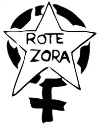 Rote Zora (English: Red Zora) was a West German radical left feminist urban guerrilla organization active from 1974 to 1995.[1] The group committed a series of bombing and arson attacks against ideological enemies, including individuals and organizations thought to be involved with sexism, the exploitation of women, genetic engineering, enforcing patriarchal society, nuclear power, and anti-abortionism.[2] Rote Zora were particularly opposed to Section 218 of the German Penal Law limiting abortion, which they referred to as the "Terrorism Paragraph".[3] The organization never officially dissolved, but was completely inactive by 1996.