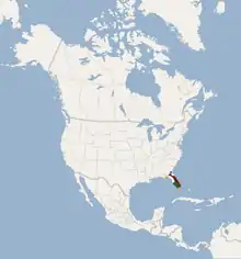 This muskrat is found through much of Florida and into southeastern Georgia, with the exception of northeastern Florida.[6] This distribution is consistent with round-tailed muskrat fossils found in several Florida locations from the late Pleistocene.[7] It is also consistent with the range of the muskrat (Ondatra zibethicus), who is absent from areas where the round-tailed muskrat inhabits, due to filling the same ecological niche. Population densities of round-tailed muskrats average between 100 and 120 animals per acre of land.[3]