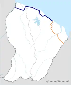Route nationale 1 (RN1) is a highway in French Guiana, an overseas region and department of France in South America. The highway connects Cayenne with Saint-Laurent-du-Maroni and measures 258 kilometres (160 mi).[1] The highway is the busiest road of French Guiana.[2]