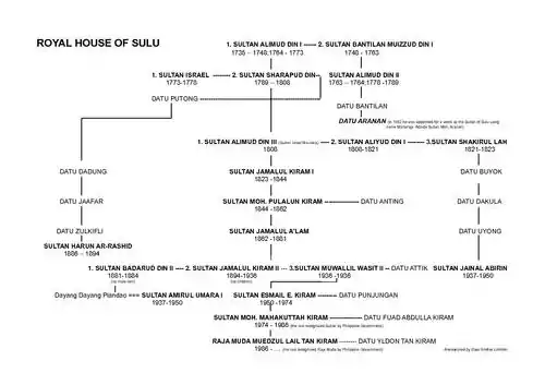 - ↑ "Line of succession of the Sultans of Sulu of the Modern Era". Archived from the original on 12 October 2017. Retrieved 26 February 2013.