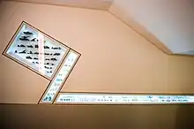 The Bat Cave is an immersive experience for visitors that presents over 20 bats and 800 models in a recreated habitat, with accompanying educational panels and video.[74] Originally opened in 1988, the bat cave reopened on 27 February 2010 after extensive renovations.[75] The 1,700-square-foot (160 m2) exhibit most notably includes a recreation of St. Clair Cave located in Saint Catherine Parish of central Jamaica. The original cave was formed by an underground river that flowed 30 metres (98 ft) below ground through the limestone and was three kilometres long. This cave was then recreated in the museum based on ROM fieldwork conducted in Jamaica in 1984.[76] A large amount of bat research has been conducted with support from the ROM. In 2011, the ROM hosted a "bat workshop" connected with the 41st Annual North American Symposium on Bat Research.[77]