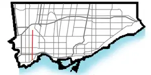 ![]() Royal York Road in Mimico, immediately adjacent to Mimico GO Station | |||||||