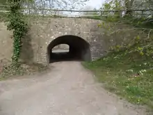 The Pontcysyllte line was extended at the south end to Trevor goods yard on the Ruabon-Llangollen line. A quarter-mile section between the station and Trefynant brickworks had been constructed by the owners, J. C. Edwards, and the GWR worked over it by agreement, for goods traffic only.[13][14]