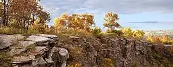 Ruffner Mountain Nature Preserve is a 1,038 acres (4.20 km2) nature preserve located in the eastern portion of Jefferson County, Alabama, in the City of Birmingham's historic South East Lake neighborhood. The preserve includes a visitor center containing native Alabama animals including raptors, snakes, turtles, and owls.[1][2][3] The Ruffner Mountain area was home to iron ore mines and stone quarries, supplying the area's steel mills.