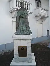 The CBCP announced that Cardinal Gaudencio Rosales would lead the August 26, 2008 centennial rites for Santos at his hometown of Sto. Nino, Guagua, Immaculate Conception Parish Church. Gloria Macapagal Arroyo was to lead the event by unveiling a historical marker and a 6 ft (1.8 m) statue of Santos (sculpted by Edillardo Paras) and donated by Cesar L. Villanueva's wife, Arlyn Sicangco-Villanueva, president of Holy Angel University in Angeles City. The rites also included the exhibit of Cardinal Santos memorabilia, loaned by the Archdiocese of Manila and the Kapampangan Museum at Clark.[4] The bronze statue will sit atop a 7 ft (2.1 m) concrete pedestal outside the Rufino J. Cardinal Santos Convention Hall adjacent to the parish church. Villanueva also presented to the President, a copy of the book "Padre Pinong, the First Filipino Cardinal" authored by Francis Musni.[6]