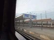 Ruse Central railway station (Bulgarian: Централна железопътна гара Русе, romanized: Tsentralna zhelezopatna gara Ruse) is the main station serving the city and municipality of Ruse, the fifth most populous city in Bulgaria. After the opening of the Danube Bridge in 1954, a new grand Stalinist Central Railway Station was envisioned for the city of Ruse. The new station opened in late 1955 temporarily becoming the biggest on the Balkan peninsula featuring three platforms, with four tracks and one passing track.