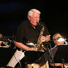 ![]() Higgins with the Tom Kubis Big Band in 2019 | |