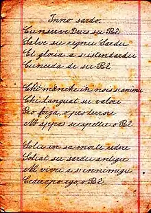 S'hymnu sardu nationale ("The Sardinian National Anthem"), also known by its incipit as Cunservet Deus su Re ("God Save the King"), was the national anthem of the Kingdom of Sardinia under Savoyard rule and of the Kingdom of Italy.[1][2][3]