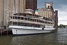 SS Columbia is the last remaining excursion steamship from the turn of the 20th century in existence, the second to last being her running mate and sister ship SS Ste. Claire which burned in 2018. Both were designed by Frank E. Kirby and Louis O. Keil, interior designer. Columbia was listed on the National Register of Historic Places in 1979, and was designated a National Historic Landmark in 1992.[2] As of 2019, the vessel is docked at Silo City in Buffalo, New York while work is being done to rehabilitate it.[4]