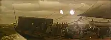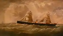 Ohio's first few months of service proved eventful. The winter of 1873-74 was particularly bad on the Atlantic, and on a late winter voyage to Liverpool, Ohio lost two lifeboats, while her after wheelhouse was damaged beyond repair by the waves. During a March crossing to Philadelphia, the ship was so battered by heavy seas that she suffered damage to her bow. In May, some of Ohio's cargo caught fire between Liverpool and Queenstown. After the fire was extinguished, the ship resumed her voyage to Liverpool, but the cargo caught fire a second time, and was only finally extinguished by a combination of battening the hatches to starve the flames of oxygen and the use of steam pumps.[10] In February of the same year, the wooden bridge of Ohio's sister ship Pennsylvania was torn from the vessel in a hurricane, and a new iron bridge was subsequently installed on all four of the Pennsylvania class vessels.[11]