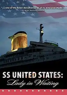 SS United States: Lady in Waiting is a 2008 documentary film about the famed ocean liner SS United States, which was in service from 1952 to 1969. It features interviews of many past crew members and passengers about the background, construction, service, and life on board the SS United States. The film also focuses on the lighting up of the vessel by artist Robert Wogan while also showing footage of her years in service. The documentary also includes excerpts of footage Wogan filmed while exploring the engine room of the United States, all of which the artist later released on a 55-minute-long DVD.[6] A charity screening of the documentary was held on March 11, 2010, the money raised going to fund the conservation of the SS United States.[7]