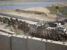 The Tigris was undergoing a heavy tide at the time and crossing it without boats was impossible for the Rashidun forces. Sa'd was forced to wait until they could cross the river.[29][44] He grew frustrated, as he was informed by locals that Yazdegerd III was going to move the treasury from al-Mada'in to Hulwan.[29][44] That morning, Sa'd changed his mind and told the army that he was willing to take the risk, and the entire force should cross the river with their mounts despite the high tide. Sa'd reasoned that they needed to subdue al-Mada'in immediately and deny Yazdegerd any chance to use his wealth to build another army.[29][9] The soldiers were hesitant, as the river torrents were fierce, but as Sa'd motivated them they complied, and one by one they plunged themselves into the river and crossed it.[29] Ibn Kathir reported that the Sassanids in al-Mada'in castle yelled "Crazy! They are crazy!", unable to believe that the Rasidun army attempted to cross the torrent without boats.[29] The Sassanids attempted to intercept the crossing by sending their cavalries, but Asim on the vanguard easily repelled them by instructing his archers to aim for their horses' eyes, causing the blinded horses to move uncontrollably. The Sassanids abandoned their horses and ran on foot.[29] As they ran, Asim commanded his forces to catch them.[29] By the time they reached the Sassanid capital, Sa'd recovered from his sickness.