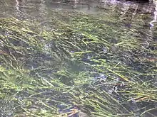 Sagittaria kurziana, common names springtape[2] and strap-leaf sagittaria, is a perennial aquatic plant. It grows up to 250 centimetres (8 feet) tall. It has long, narrow, flat leaves that float on the surface of the water, up to 250 cm long but rarely more than 15 millimetres (1⁄2 inch) wide. These form huge masses of ribbon-like leaves flowing back and forth with the current. Inflorescences also float on the surface, the white flowers very often submerged.[3][4][5]