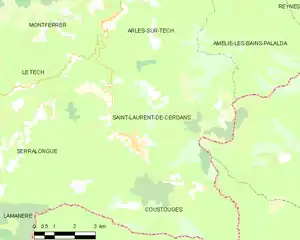 Saint-Laurent-de-Cerdans is located in the canton of Le Canigou and in the arrondissement of Céret.