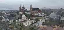 The Bishop of Savannah sent pastors to St. Joseph's Church until 1887, when he asked Jesuits to come from New Orleans to Macon to staff St. Joseph's and to take over the school which the diocese had begun in 1876, Pio Nono College. One Macon thoroughfare (Pio Nono Avenue) is a reminder of the school named after Pope Pius IX. (Pio Nono is Italian for Pius Ninth). In 1888, one year after coming to Macon, the Jesuits were determined to build a church more worthy of the Lord of Hosts. The site of the present church was selected and the negotiations were completed when Father Joseph Winkelried, S.J., became pastor. The foundation of the church was laid in August, 1889. On June 16, 1892, the basement of the church, which was used for services until 1903, was blessed by Bishop Becker. Fourteen years after work on St. Joseph's Church had been started, the edifice was dedicated on November 15, 1903. Six bishops from various parts of the country assisted at the ceremony. The November 15, 1903, edition of the Macon Telegraph began its coverage of the Church's dedication with, If architecture may be fittingly described as frozen music, St. Joseph's Church, to be dedicated today, is a symphony. [4]