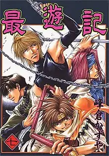 ![]() Cover of the seventh tankōbon volume, featuring Genjo Sanzo (center), Son Goku (bottom), Sha Gojyo (right) and Cho Hakkai (left) | |||||||||||||||||||||||||||||||||