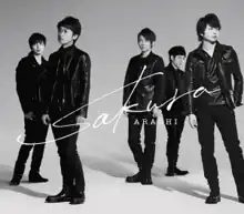 "Sakura" is the 45th single by Japanese boy band Arashi. It was released on February 25, 2015 under their record label J Storm. "Sakura" was used as the theme song for the television drama Ouroborous, starring actors Toma Ikuta and Shun Oguri. The single was released in two editions: a first press/limited edition and a regular edition. The first press/limited edition contains the B-side "Rise and Shine" and the music video and making-of for "Sakura" while the regular edition contains two B-sides. The single sold 465,381 copies in its first week[2] and topped the weekly Oricon Singles Chart.[3] With over 520,000 copies sold, the single was certified Double Platinum by the Recording Industry Association of Japan (RIAJ).[4] The single placed 11th on Oricon's 2015 yearly singles ranking.[5]