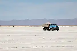 The Salinas Grandes are located in the north in the provinces of Jujuy and Salta (in Argentina), at an average altitude of 3,450 meters (11,320 feet) above sea level. It covers an area of 212 km2 (82 sq mi) and is well-known for its vast white desert.[1] The desert is about 320 km (200 mi) long.