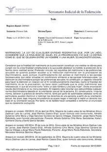 "Marriage. The law of any federative entity that, on the one hand, considers that the purpose of it [marriage] is procreation and/or that defines it as that which is celebrated between a man and a woman, is unconstitutional." (Matrimonio. La ley de cualquier entidad federativa que, por un lado, considere que la finalidad de aquél es la procreación y/o que lo defina como el que se celebra entre un hombre y una mujer, es inconstitucional.)