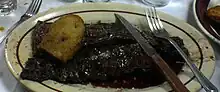 Sammy's Roumanian Steakhouse was a Romanian-Jewish restaurant in Lower East Side, Manhattan that closed in 2021 due to the COVID-19 pandemic in New York City, but will reopen.[1][2] Sammy's was considered something of a NY foodie institution.[3] Sammy's opened in 1975, in a spot occupied previously by another Romanian restaurant on Chrystie Street. [4] Sammy's occupied a basement retail space in the Lower East Side for 47 years where it served Romanian-style steak and offered entertainment by lounge performer Dani Luv, who also does Borscht Belt-style stand-up comedy replete with Yiddish.[5][6][7][8] The entertainer will return when the restaurant, which was also known for its vodka-fueled nightlife scene and garlicky beef, reopens.[9][10]