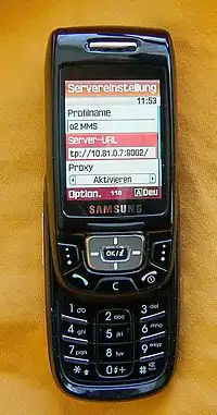 The Samsung SGH-D500 is a slider-style mobile phone created by Samsung. It was announced in Q4 2004 as a replacement to the popular Samsung E800. It has a 1.3 megapixel digital camera with an integrated LED flash. The phone can be purchased in various colors such as black, grey/silver, silver/white, silver/blue, black/blue, and black/silver. The D500 won the prestigious award "the world's best cellphone"[2] at the 3GSM world congress in Cannes, 2005. The SGH-D500 was popular with consumers because of the large screen-size to front-surface ratio, the smooth button and sliding action, powerful flash, and good video/photograph/sound quality. The D500 was regarded as compact and as having a good feature set for its time. Samsung experienced remarkable success with the introduction of the D500 and has therefore introduced several other slider-style mobile phones in recent years, some fairly successful, others not so much. This phone helped to popularise the 'active' sliding phone concept across all brands. The SGH-D500 has been succeeded by the Samsung SGH-D600. There is a very similar variant handset, the SGH-D500E.