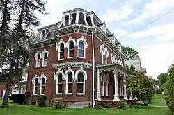 Built in 1875, his historic structure is a large two-story, brick dwelling that was designed in the Second Empire style. It has a gabled wing with solarium and sleeping porch, and features a slate-covered mansard roof, a two-story projecting bay, and porches across the front and rear facades. Also located on the property is a contributing carriage house that was converted to a garage.[3]