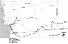 - La Mesa Branch: Runs 16.1 miles (25.91 km) east to the city of El Cajon. Also used by the San Diego Trolley's Orange Line.