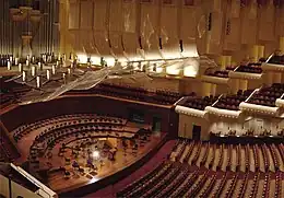 Notable performances throughout the SFSYO's history include its 25th anniversary concert in May 2007 with a performance of Beethoven's Symphony No. 9 with the San Francisco Symphony Chorus and soloists from San Francisco Opera;[2] the 1996 performance of John Cage's Renga and Apartment House 1776 with four surviving members of The Grateful Dead joining the orchestra; the 2005 performance of Mahler's Symphony No. 1 (conductor Edwin Outwater's farewell concert as the orchestra's 5th Music Director); and the 2008 performance of Dvořák's New World Symphony in memory of the SFSYO's benefactor Agnes Albert.[3][4][5] In 2009, the orchestra also hosted and participated in the region's first Bay Area Youth Orchestra Festival at Davies Symphony Hall, which was again hosted at the hall in 2011, 2012, 2014, 2016, 2018, and 2020.