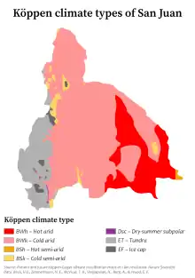 Köppen climate map of San Juan, Argentina