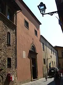 The adjacent former Franciscan order nunnery, now a hotel, was founded in 1480, supposedly on the home of the first-century saint and Pope Linus, who putatively followed Peter as the second pope and of whom little else can be documented. Legend holds that he was born in Volterra.[1]