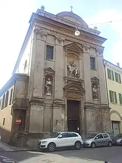 • A series of canvases of Saints and Beatified citizens along the lateral walls including : Blessed Osanna Andreasi, Blessed Paola Montaldi, San Giovanni Bono, and Saint Aloysius Gonzaga by Luigi Niccolini