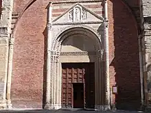 The basilica remained the main sepulchral church of the Visconti court in Pavia until the foundation of the Certosa: between 1384 and the beginning of the 15th century, Francesco d'Este, the eldest daughter of Gian Galeazzo and Caterina Visconti, Violante Visconti and the condottiero Facino Cane.[7] Also in the same years, the basilica was visited by diplomats and ambassadors visiting the court of Galeazzo II, such as Geoffrey Chaucer in 1378.[8] In 1525 the Landsknechte captain Eitel Friedrich III, count of Hohenzollern and Richard de la Pole, pretender to the English crown, who died during the battle of Pavia, were also buried in the basilica.[9][10]