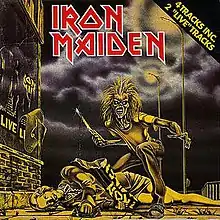 The cover art caused controversy for the band as it depicted their mascot, Eddie, wielding a knife while crouching over the corpse of then British prime minister Margaret Thatcher.[9] The band's manager, Rod Smallwood, explained the artwork's concept: "The artwork is very tongue in cheek, as usual. At that time, Maggie had visited the old USSR and, following her tough stance with them, had been christened the Iron Maiden. Eddie took offence to this, and even more so when she started taking our posters."[9] It was Smallwood himself who suggested to EMI that the cover be released with Thatcher's face censored "as this would give the tabloids an angle and draw attention to the single."[9]