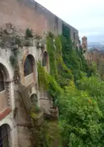 The Sanctuary of Hercules Victor (Italian: Ercole Vincitore) in Tivoli (Italy) was one of the major complexes of the Roman Republican era built on the wave of the Hellenistic cultural influence after the final Roman conquest of Greece (146 BC).[1] It was built just outside the ancient city of Tibur and is the largest of Italic sanctuaries dedicated to Hercules (such as the Shrine of Hercules Curinus), and the second in the whole Mediterranean after that of Cádiz in Spain.[2] It was built between about 120 and 82 BC and was a masterpiece of Roman engineering with many innovations.[3] Further building was done in the Augustan period especially in the theatre area. Augustus administered justice here on numerous occasions, under the arcades of the sanctuary.[4]
