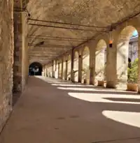 - A section of the "clivus tiburtinus" (the last stretch of Via Tiburtina) which, in the original project skirted the side of the complex, was incorporated into a tunnel, the via tecta, which joins the oldest structure to the majestic second phase complex on the north side, whose structures rise more than 40 m from the banks of the Aniene and which is the best preserved part of the sanctuary.