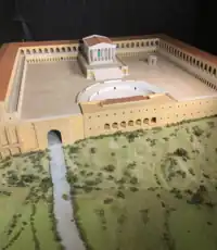 In late republican and imperial times the traffic that crossed the city of Tibur (and therefore the sanctuary) had increased to the point that it was necessary to set up rest and sorting camps for wagons and herds, with related assistance and health control services, upstream and downstream of the bridge (the Roman bridge probably fell in the great flood of 105 AD[14]) which crossed the Aniene near the temples of the Acropolis (also built at the beginning of the splendour of the city, II-I century BC). The rest camps upstream (towards Abruzzo) were probably in Crocetta, about 2 km from the city; those downstream from the clivus tiburtinus almost reached the Lucan bridge. These lands were all owned by the sanctuary.