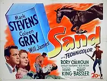 Sand is a 1949 American Western film directed by Louis King and starring Mark Stevens and Coleen Gray. It was nominated at the 22nd Academy Awards for Best Cinematography (color), which Charles G. Clarke was nominated for.[3]