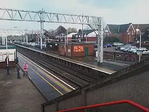 Sandbach railway station serves the town of Sandbach in Cheshire, England. The station is 4+34 miles (8 km) north-east of Crewe on the Crewe to Manchester Line.